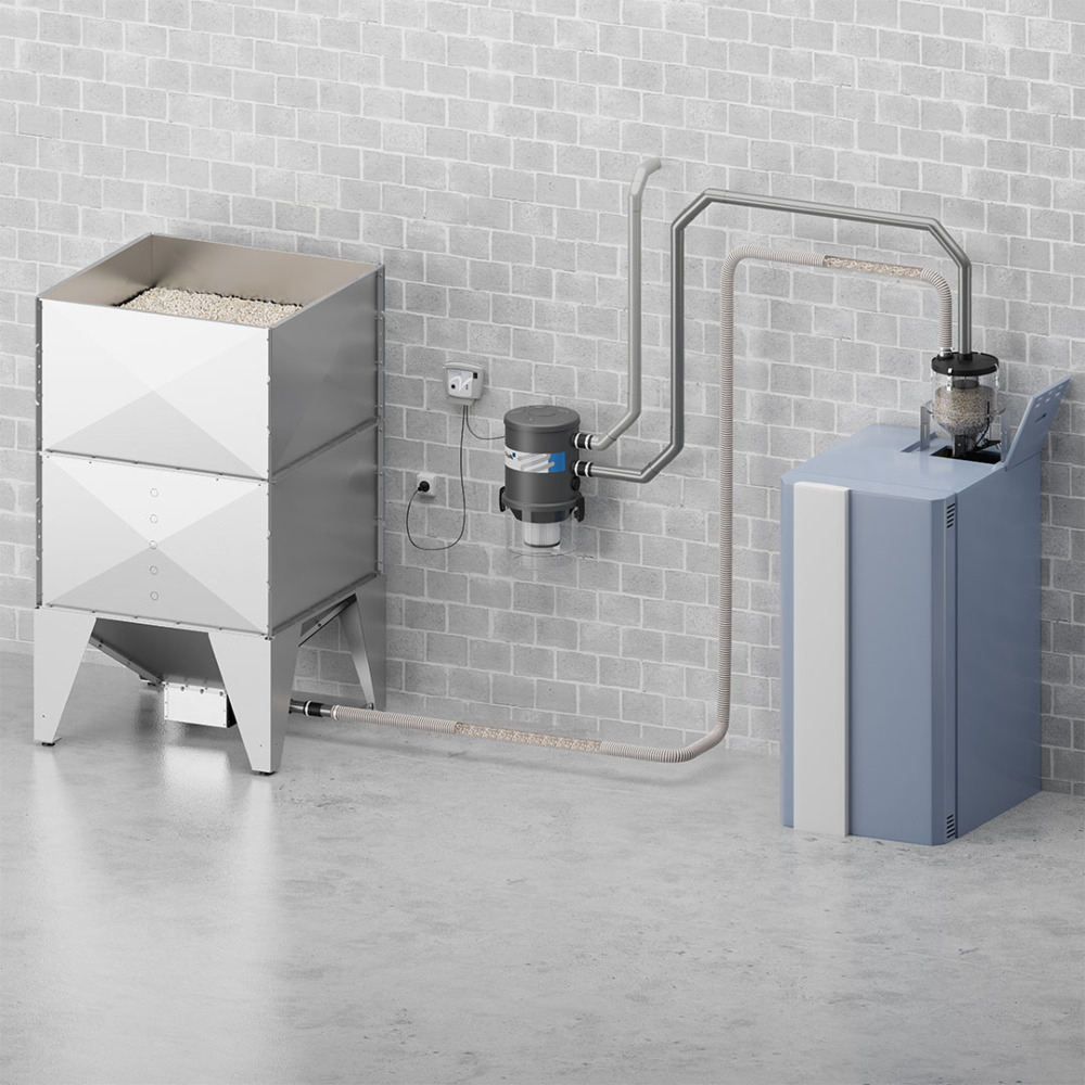 Convient pour les installations avec extraction des granulés par aspiration, distance maximale d'aspiration 20 mètres.